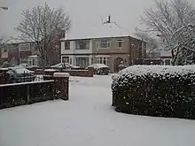The first snow fell on 17 December 2009, before a respite over the Christmas period.[2] The most severe snowy weather began on 5 January in North West England and west Scotland with temperatures hitting a low of −17.6 °C (0.3 °F) in Greater Manchester, England.[3] The snow spread to Southern England on 6 January and by 7 January the United Kingdom was blanketed in snow,[2] which was captured by NASA's Terra satellite.[4] The thaw came a week later, as temperatures started to increase.[2]