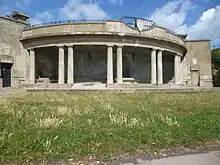 The gardens were designed by the architects Sir John Burnet & Partners, and constructed by Pulham and Son. The main feature of the gardens, is a semi-circular shaped colonnade carved into the pulhamite recess. Inside the shelter, and now lost, were two pieces of sculpture work by Mr. Gilbert Bayes. They represented children playing with the "Ram" of Ramsgate.[3]