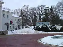 Architect Frank Riley of Madison, Wisconsin, designed the mansion in the southern Classical Revival style. The Residence sits on 3.7 acres (15,000 m2) along Lake Mendota. Although it was renovated extensively during the 1960s, the Residence now is much as Johnson planned originally. The more than 16,000 square feet (1,500 m2) of living space include 34 rooms, 13 bathrooms and 7 bedrooms and fireplaces. Several items of Wisconsin historical interest may be found throughout the Executive Residence. The wrought-iron fence on the street side of the property originally surrounded the old State Capitol Building. The mansion is wood-framed structure with painted stucco over sandstone and hollow clay tile face. It is three stories high and has a basement level for a total of 23,455 gross square feet.[1] There are 10 major garden areas, including a screened-in gazebo and winding walkways that lead to the lake shore.[1]