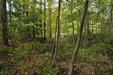 The Wiswall Falls Mill Site (site 27-ST-38) is a historic archaeological industrial site in Durham, New Hampshire. It is located in John Hatch Park, a small public park just south of Wiswall Road on the eastern bank of the Lamprey River. The 3-acre (1.2 ha) site encompasses the remains of a small 19th-century mill complex that was one of Durham's major industrial sites of the 19th century until it burned in 1883. The site, which includes remains of the waterworks and foundations, was listed on the National Register of Historic Places in 1988.[1]