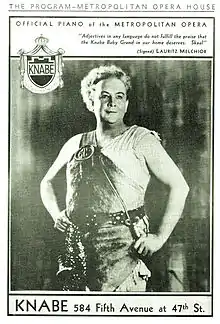 In 1927 Wm. Knabe & Co. removed their New York warerooms from 437 Fifth avenue at 39th street to 657 Fifth avenue, corner of 52nd Street,[44] and in 1928 moved to Ampico Tower at Fifth avenue and 47th street as part of American Piano Co.'s move to consolidate the sales of all their brands[45] in an unsuccessful attempt to make up for a sharp decline in profits. American went into receivership in 1929, and Knabe's liabilities were listed as $286,000 and assets $415,000.[46]