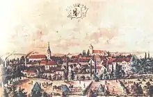 The city's origins can be traced back into the 10th and 11th century, when three Slavic settlements existed on Wodzisław's present-day territory which eventually merged to form one town. In the course of the medieval eastward migration of Flemish and German settlers (Ostsiedlung), Wodzisław, as many other Polish settlements, was incorporated (granted city status and right) according to the so-called Magdeburg Law at some point before 1257 (the exact date remains unknown).[2] This, however, is not to be confused with a change in national affiliation; Wodzisław continued to be part of the Kingdom of Poland, until Silesia as a whole became a fiefdom of the Bohemian crown in 1327. At that times of Duchess Constance, the town developed fast. Wodzisław was one of the most populated and richest towns of Upper Silesia. In 14 and 15th century the city continued to grow and developed into a regional trade centre. In the 15th century, the Hussites devastated the city.[3] From 1526, Bohemia, including the fiefdom of Silesia, which Wodzisław was a part of, came under the authority of the Habsburg crown.