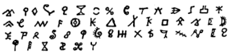 In 1905 a lost missionary named Alfred Snelling and his Chuukese crew landed on Eauripik, a Woleaian-speaking atoll 100 km to the southwest of Woleai proper. There they taught the islanders the Latin orthography of Chuukese. The Woleaians, perhaps not given enough time to grasp the concept of an alphabet where each syllable is written as consonant plus vowel, understood each letter to represent its name, and thus interpreted the Latin alphabet as a defective syllabary that could only represent simple vowels and consonants plus the vowel [i]. (Riesenberg & Kaneshiro (1960) call the glyphs at this stage of development "Type 2".)[2] The glyphs were also mixed up somewhat: Although the letters resembling T, K, S, R, H, O, E, for example, stood for [ti, ki, si, ri, i, wo, ø] (there is no [h] sound in Woleaian), and W, И stood for [mi, ni] (that is, the letters M and N were inverted), letters resembling L, B, D stood for [fi, tʃi, pi]. (Note that these Latin letters are not necessary for Woleaian, since short [l] and long [nː] are not distinguished.)