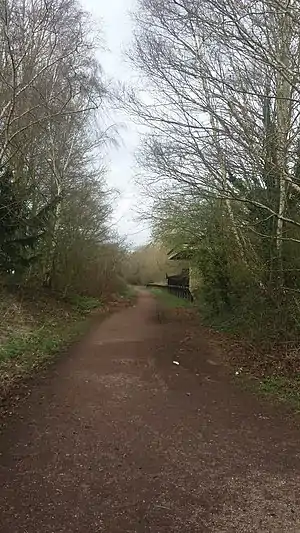 Wombourn railway station was the main intermediate station on the Wombourne Branch Line, situated at the Bratch. It was opened by the Great Western Railway in 1925 and closed in 1932.[2] It was a grandiose affair with a goods yard and many station amenities. This, however, didn't stop poor patronage which led to the station's closure a mere seven years after opening. It remained in use for freight traffic until the line passing through the station was closed on 24 June 1965.