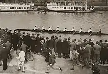 ![]() The Cambridge crew in 1927 on the day of the race | |||