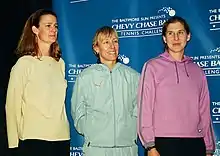 By 1888, American women tennis players were agitating for their own championship competition. USLTA claimed that they lacked the authority to organise such a competition.[1] In 1923, the Wightman Cup was created as a national women's tennis competition between the United States and Great Britain. The trophy for the event was paid for by Hazel Wightman, an American tennis champion. The location of the cup was alternated between countries on a yearly basis. Great Britain won in 1924, 1925, 1928 and 1930. In all other years that the cup was contested, the Americans claimed victory.[2]