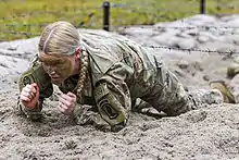 The United States military opens all positions to women.[58] Units such as Special Operations require members to meet extraordinary requirements, and very few women have met them. As of 2022, it is reported that three women have completed the Army's elite Special Forces course, one has completed Navy Special Warfare Training to become a Naval Special Warfare combatant-craft crewman, and one has completed the Air Force special tactics courses necessary to become a Combat Controller.[59][60]