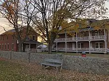 By 1898 the east and central wings of the infirmary were condemned and rebuilt.[2] Oil wells built on the property as a result of the Ohio oil boom supplied heating and lighting oil until 1904, and the lack of heating in the East and Central wings was again an issue in 1979.[2] In the 1920s the director of the Infirmary hand built a stone wall around the site.[2][4] From 1935 on, the Infirmary shifted operations to be closer to a nursing home.[1]