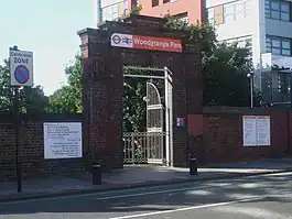 Woodgrange Park railway station is a railway station on Romford Road in Manor Park in the London Borough of Newham, east London. It is served by London Overground, and is on the Gospel Oak to Barking line, 12 miles 1 chain (19.3 km) down the line from Gospel Oak; it lies in Travelcard Zones 3 and 4.[3] It has only limited station buildings and facilities.