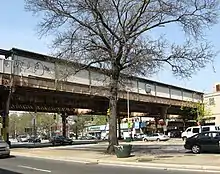 The Woodhaven Boulevard station is an elevated station on the BMT Jamaica Line of the New York City Subway, located in Woodhaven, Queens.[4] It is served by the J train at all times and the Z train during rush hours in the peak direction.[5] As of February 2023, the eastbound platform is temporarily closed.
