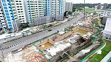 The station was first announced as part of the 22-station Thomson line (TSL) on 29 August 2012.[6][7] In July 2013, Shanghai Tunnel Engineering Co. Ltd was awarded a S$421 million (US$336.5 million) contract for the construction of bored tunnels connecting from Woodlands station to Mandai Depot via this station. Tunnelling works was scheduled to begin in August that year.[8][9] In August, the contract for the design and construction of the station was awarded to Woh Hup Private Limited at S$144 million (US$115.1 million). Construction was scheduled to be completed in 2019.[10]