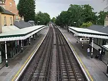 Woodside Park station was planned by the Edgware, Highgate and London Railway (EH&LR) and was originally opened as Torrington Park on 1 April 1872 by the Great Northern Railway[7] (which had taken over the EH&LR).[14] The station was on a branch of a line that ran from Finsbury Park to Edgware via Highgate. The station was renamed within a month of opening, and again in 1882.[7][8]
