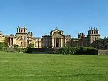 The Palace was designed by John Vanbrugh, in a heavy Italo-Corinthian style. It was designated to John Churchill, the first Duke of Marlborough. Most of the palace was paid for by the nation. Churchill had been given the manor in perpetuity in honour of his victories over the French and the Bavarians at the Battle of Blenheim in 1704, during the War of the Spanish Succession. The original manor, mostly ruined, was demolished as part of the project.[3]