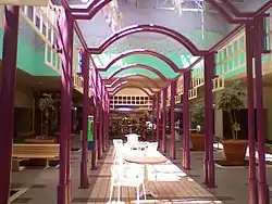 Simon Property Group, which merged with DeBartolo in 1996, put Woodville Mall and another mall in Toledo, North Towne Square, up for sale in 1999.[10] Both properties were sold in 2004 to Sammy Kahen and Jack Kashani of California.[11] Most of the mall's inline stores closed in the 2000s; by 2006, fewer than 30 of the mall's 100 spaces were operational. At this point, the mall's owners considered tearing down portions of the mall.[11] Kahen and Kashani's plans for renovation never materialized, leading to the closure of the Elder-Beerman store and movie theater in late 2009.[12][13] Mike Kohan, a New York real estate investor, bought the mall from Kahen in November 2009 and announced plans to add stores.[12] New stores opened at the mall in 2011, including a sandwich stop, a furniture store and a radio station. Kohan also attempted to sell the mall to Royale Property Management, a New Jersey concern, but the deal failed because it was contingent on the replacement of the structure's roof.[14]