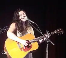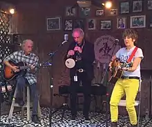 The 10th annual festival took place July 11–15, 2007. To celebrate the ten-year anniversary, one of many Oklahoma centennial-year events, the festival kicked off with a ticketed event on Wednesday night in Okemah's historic Crystal Theater.[2] Seven "10-year artists" - artists who have participated every year since the festival's inception - performed at a Coalition benefit show titled "In the Spirit of Woody Guthrie". Those artists were Jimmy LaFave, Don Conoscenti, Ellis Paul, Bob Childers, Joel Rafael, Terry "Buffalo" Ware, and the Red Dirt Rangers.[36] The 2007 lineup spanning over four days included more than 60 artists from many genres including folk, alt-country and rock. Members of the Guthrie family scheduled to appear were Arlo Guthrie and Cathy Guthrie (daughter of Arlo) and Amy Nelson (daughter of Willie Nelson), who perform as Folk Uke. More than 100 artists performed at the festival's 10-year celebration including Kevin Welch, Sara Hickman, Butch Hancock, Tim O'Brien, Ronny Elliot, Terri Hendrix and Lloyd Maines, Rob McNurlin, Jack Williams, Antje Duvekot, Johnsmith, Sam Baker, David and Adam Amram, The Burns Sisters, Ronny Cox, Michael Fracasso, Radoslav Lorković and Eliza Gilkyson.[37] The tenth festival again concluded on Sunday with a "Hoot for Huntington's", having become a Woody Fest tradition. The hootenanny is coordinated and led by Terry "Buffalo" Ware, a guitarist living in Norman, Oklahoma, and the Woody Guthrie Folk Festival All-Star House Band. The House Band also includes Randy Crouch (fiddle/pedal steel), Don Morris (bass), Dean Brown (drums), Dan Duggin (accordion) and T.Z. Wright (keyboard/accordion). The House Band can be heard playing back-up for many festival performers and in 2007 also played a set of their own - as The Oklahoma Geniuses - at the Brick Street Cafe.[38]
