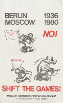 The Workers' Communist League of New Zealand (abbreviated WCL) was a political party in New Zealand. During the 1980s the WCL was the second-largest Marxist organisation in the country (after the pro-Moscow Socialist Unity Party of New Zealand (SUP)).[1][2] Whilst relatively small, the organisation played a key role in various social movements.[1] The organisation was noted for its role in the protest movements against tours of the South African rugby union team Springboks. The group was active in the trade union movement, in particular in Wellington.[3] During the 1980s WCL diverged from Leninist orthodoxy and embraced feminism and Maori self-determination.