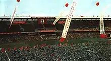 The original Workers' Stadium (simplified Chinese: 工人体育场; traditional Chinese: 工人體育場; pinyin: Gōngrén Tǐyùchǎng), often abbreviated as Gongti or Gong Ti (simplified Chinese: 工体; traditional Chinese: 工體; pinyin: Gōng Tǐ), was a multi-purpose stadium in Chaoyang District, Beijing, China. The stadium was built in 1959, and was renovated in 2004 (the concrete structure strengthened, a new rotating display screen and energy-saving devices installed). The stadium was closed for a complete rebuild in 2020 and reopened on 15 April 2023 as a new stadium built on the original site.[2][3][4] It had a capacity of 65,094 and covered a land area of 350,000 square metres (3,800,000 sq ft). It was one of the Ten Great Buildings constructed in 1959 for the tenth anniversary of the People's Republic of China.