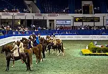 ![]() A class of American Saddlebreds and riders at the World's Championship Horse Show. | |