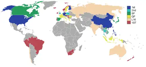 The World Cup of Pool is an annual international single-elimination tournament for doubles teams in nine-ball pool competition. The Philippines holds the record in tournament wins, winning the event on four occasions. In 2023, they became the first country to win the cup by entering the event unseeded.[1][2]