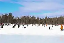 The World Pond Hockey Championships is an annual international competition that takes place outdoors, on a body of frozen water, playing the pond hockey variant of ice hockey. The event takes place in the small, rural village of Tobique Valley, Canada, on Roulston Lake.[1]