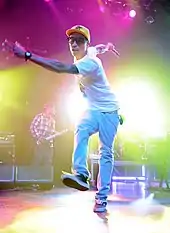 Upon expressing admiration for Basement Jaxx's debut album Remedy, Jackson contacted the house duo to collaborate.[11] Jackson was offered to record the Jaxx's single "Get Me Off" for the album, though declined.[12][13] She would later record several unreleased songs with them for her following album, Damita Jo.[14] An unreleased collaboration with Jay-Z was recorded.[15] Outkast also featured on an unreleased remix of "Someone to Call My Lover".[16] Jackson had planned to record a duet with Aaliyah, intended to appear on All for You in addition to Aaliyah's self-titled album released several months later, though was unable to proceed due to scheduling conflicts.[17] A collaboration with Missy Elliott titled "Nasty Girl 2000," an updated cover of Jackson's hit "Nasty," was intended to feature Jackson and additional vocals from Aaliyah, but was not recorded.[18] Jackson also desired to collaborate with British singer Robbie Williams.[19] The album intended to feature a house and hip hop direction during its early stages, with other potential collaborators including Dallas Austin, Swizz Beatz, Diddy, Missy Elliott, Teddy Riley, Kandi Burruss, and Darrell "Delite" Allamby.[20][21] However, the collaborations did not come to fruition due to scheduling conflicts while filming and periodic illness throughout recording. An unreleased song titled "New Beginning" appeared in initial press releases but was not included on the album.[3]