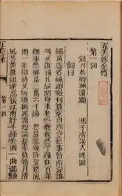 Wu Mei Yuan[1] or Wumei yuan[2] (traditional Chinese: 五美緣; simplified Chinese: 五美缘), translated into English as the Destinies of Five Beauties,[3] is a Chinese romantic novel of the early 19th-century during the Qing dynasty. The novel is usually categorized as one of the caizi jiaren novels. Its authorship is ascribed to a writer named Jisheng Shi (寄生氏), which is a pseudonym, however, this is also disputed.[4] It consists of 80 chapters. An early printed edition of the novel dating to 1822 is located in the National Library of China.
