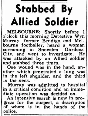 - Detectives Seeking Gardens Stabber, The Herald, (Saturday, 26 February 1944), p.3.