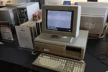 In 1984, Wyse entered the personal computer marketplace. The first of these was the Wyse 1000, a computer based on the Intel 80186 (which did not see huge volumes because its integrated hardware was incompatible with the hardware used in the original IBM PC). Next came the WYSEpc, an IBM-compatible computer based on the 8088 processor, which had a good following due to its slim-line design. Later, Wyse introduced personal computers compatible with the IBM PC/AT based on the 80286 and 80386, which were top sellers. Wyse sold through 2-tier distribution, which limited growth in the late 1980s as mail order companies like Dell and Gateway entered the marketplace. In 1984 Wyse became one of the leaders in the general purpose text (GPT) terminal industry and on August 17, 1984, went public on the New York Stock Exchange. In the following years, Wyse added the PC product line Wyse pc3216.[12] The Wyse 3216 was based on Intel's newest 386 chip. It sold for $1,500 less than a comparable Compaq DeskPro, $2,000 less than an IBM System 80, and performed at a higher speed than both. In 1989, Wyse developed LAN-attached communication devices.[10][13]