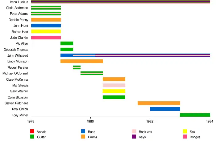 - Irena Luckus – vocals, keyboard, guitar (1978–84)