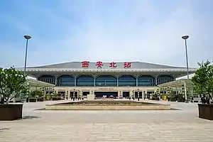 Xi'an North railway station (Chinese: 西安北站; pinyin: Xī'ānběi Zhàn) is a railway station on the Zhengxi Passenger Railway, Xibao Passenger Railway and Daxi Passenger Railway. The station is located in Weiyang District of Xi'an, the capital of Shaanxi province. It is some 10 km (6.2 mi) north of the city centre and the Xi'an railway station.