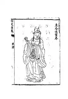 Xiao Baojuan (蕭寶卷) (483–501), né Xiao Mingxian (蕭明賢), commonly known by his posthumously demoted title of Marquess of Donghun[1] (東昏侯), courtesy name Zhizang (智藏), was an emperor of the Southern Qi dynasty of China, during the Northern and Southern dynasties period. He was a violent ruler who executed high-level officials at his whim, and this drew several major rebellions, the last of which, by his general Xiao Yan, overthrew him and eventually his dynasty, with Xiao Yan establishing the Liang dynasty. He is known as the Marquess of Donghun because Xiao Yan demoted him to that title after he was killed in a siege of the capital Jiankang.