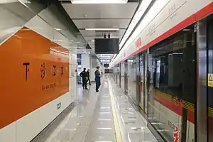 Xiashajiangbin (Chinese: 下沙江滨) is a station on Line 1 of the Hangzhou Metro in China.[1] It was opened on 24 November 2015, together with the expanded section of Line 1.[2] It is located in the Qiantang District of Hangzhou.