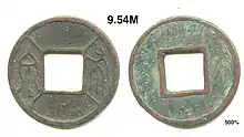 The first reform, in AD 7, retained the Wu Zhu series of cash coins, but reintroduced two versions of the knife money:[2][6]