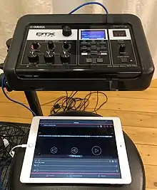 Rec'n'Share is an App (on iOS and Android) which is compatible with DTXPRO (DTX6), EAD10 and the DTX402 kits. The app is connected to the module with a USB cable and any relevant adaptor that attaches to the device. In the case of iPhones, the user needs a USB to Lightning adaptor, such as the Lightning to USB3 adaptor or the Camera Connection Kit (CCK).