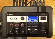The DTX range consists of electronic drum kits and percussion controllers manufactured by the Yamaha Corporation. They currently cover levels from entry-level to pro-range. DTX kits use sampling for their sounds, meaning each kit has built-in digital recordings of real drums and cymbals. When the drum or cymbal pads are hit, the digital recordings (or samples) are played back to replicate what is being played. On all kits, the sounds are editable – the pitch can be made higher or lower (tuned) and many other features. The higher the range of the DTX, the more functions there are editable.