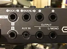 1 Snare 6.35mm TRS 3 zone (piezo/switch) or Dual Mono (piezo/piezo)