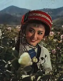 In 1959, at the age of 18, Yang was selected by Wang Jiayi, the director of Changchun Film Studio, to star as the female lead, Jin Hua, in the romantic comedy film Five Golden Flowers, which reflected the socialist construction of the Bai people during the Great Leap Forward. The film was released in December 1959 and became an immediate sensation, being screened in 46 countries.[1] It won the Silver Eagle Award for Best Film at the 2nd Asian-African Film Festival in Egypt in 1960, and Yang won the Silver Eagle Award for Best Actress.