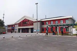 Yanqihu railway station (Chinese: 雁栖湖站; pinyin: Yànqīhú zhàn; lit. 'Yanqi Lake railway station'), formerly known as Fangezhuang railway station (Chinese: 范各庄站; pinyin: Fàngèzhuāng zhàn) before 2019, is a railway station in Fangezhuang Village, Yanqi Subdistrict, Huairou District, Beijing. It was built in 1976[1] and was renamed to the current name on July 15, 2019.[2]