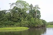 Yasuní National Park (Spanish: Parque Nacional Yasuní) is a protected area comprising roughly 10,000 km2 between the Napo and Curaray Rivers in Pastaza and Orellana Provinces within Amazonian Ecuador.[1] The national park lies within the Napo moist forests ecoregion and is primarily rain forest. The park is about 250 km from Quito and was designated a UNESCO Biosphere Reserve along with the adjacent Waorani Ethnic Reserve in 1989. It is within the ancestral territory of the Huaorani indigenous people. Yasuní is also home to two uncontacted indigenous tribes, the Tagaeri and the Taromenane.[2] Many indigenous people use the riverways within the park as a main mode of travel. Several waterways in the area are tributaries that lead into the Amazon River, including blackwater rivers high in tannins boasting vastly different floral composition than the main riverways. The spine-covered palm, Bactris riparia,[3] and aquatic plant Montrichardia linifera typically line the edges of these slow moving rivers, often referred to as Igapós.