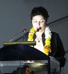 Yeşim Ağaoğlu (born January 21, 1966) is a Turkish multidisciplinary artist and a poet who works with various mediums, especially concentrating on installation, photography and video.[1] Her family comes from the city of Shusha in the Karabagh region of Azerbaijan. The most important thing for her in art is being interactive. She works on poetry (language) and art relationships, gender and feminism issues, architectural elements and political subjects. Since 1995 Agaoglu has produced nine poetry books that have made her famous as a female poet in the literature scene of Turkey.[2]