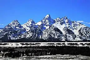 The artwork for Ye was revealed by Kardashian to have been taken by West on his iPhone on their way to the listening party on May 31, 2018, hours before the release of the album. It features a view of the Teton Range from Jackson Hole, the mountain range where the album was recorded and produced.[89] The mountainous terrain photographed is natural, though it is questionable whether the artwork includes a skyline or not within the area that the terrain is present on it.[90] The text on the artwork reads: "I hate being / Bi-Polar / its [sic] awesome," which is scribbled in neon green over the mountain range.[89] With the inclusion of the phrase on the artwork, West confirmed his bipolar disorder.[28]