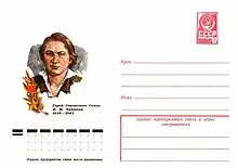 Yelizaveta Ivanovna Chaikina (Russian: Елизавета Чайкина; 28 August 1918 – 23 November 1941) often referred to as Liza Chaikina, was the Secretary of the Kalinin Komsomol Penovsky underground committee, a Soviet partisan detachment organizer and posthumous Heroine of the Soviet Union.[1]