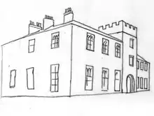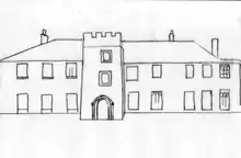 - View from west. The remaining building is the former stable-block, converted in 1962 by the Westaway family to a farmhouse,[1] now called Yeo Vale cottages.