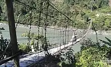 In January 2019, Byorung Bridge, a 300-meter long cable stayed suspension foot-bridge, was constructed over the Siang river . The bridge connects the town of Tuting on the eastern bank to the road to Tuting-Gelling on the western bank, reducing 40 km in travel distance for 20,000 residents of nearby villages.[26]