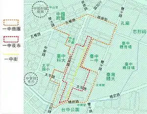 Yizhong Street (Chinese: 一中商圈; pinyin: Yī Zhōng Shāng Quān) is a pedestrian street located in North District, Taichung, Taiwan. It is located between Sanmin Rd. (三民路), Yizhong St.(一中街), Taiping Rd.(太平路), Yucai St.(育才街), Yucai South St.(育才南街) and Yucai North St.(育才北街). In 2006, according to the survey conducted by National Chung Hsing University, it is elected as the most popular shopping area in Taichung.[1]