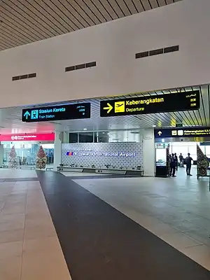 Yogyakarta International Airport Station (YIA) (Indonesian: Stasiun Yogyakarta International Airport/Stasiun Bandar Udara Internasional Yogyakarta) is a class I airport rail link station located at Yogyakarta International Airport in Glagah, Temon, Kulon Progo, Special Region of Yogyakarta, Indonesia. The station is located at an altitude of +22 m, and is currently the southernmost active station in the province. The station is located within the airport complex and only serves YIA Airport Rail link trips to and from Yogyakarta Station. When it is in operation, the station assists the role of Wojo Station as the closest station to YIA Airport.