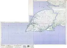 The island was first sighted by Europeans in about January 1606 when Willem Jansz and his crew on the ship Duyfken rounded it on their way to and returning from their discovery of Australia. The Duyfken spent considerable time in the bight in between the island and the mainland. Jansz's map of the expedition describes the island as lowland and muddy land and with the name "Tiuri".[2] When rounding the prominent southwest cape, jutting into the Arafura Sea, in 1623, Jan Carstensz named it Valse Kaap (Dutch for "False Cape"), a name retained to date (Indonesian Tanjung Vals, English "Cape Vals").[3]