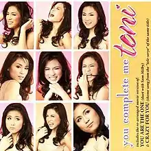 Toni: You Complete Me is the second studio album of Filipino TV host, actress-singer Toni Gonzaga and her debut album in Star Records, released in April 2006 in the Philippines[1] in CD and release a repackaged album through digital download on iTunes[2] and Amazon.com.[3]