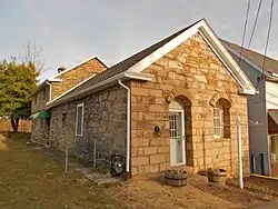 Built circa 1817, this historic structure is a one-story, square, sandstone building. It measures twenty-five feet square and has a gable roof. A two-story, rear stone addition was added circa 1935.