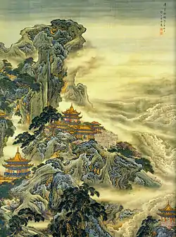 Penglai, one of the mythical islands. Hanging scroll by Yuan Yao